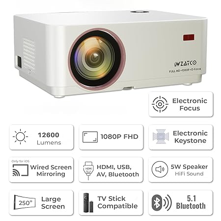 - Why We Love It: The WZATCO Eve is a compact powerhouse, delivering vibrant visuals for movies and gaming. Its remote-controlled electronic focus simplifies setup, and the 5W speaker offers clear audio. With 4K input support, it’s great for connecting to a Fire TV Stick or laptop for sharp images in dark rooms.